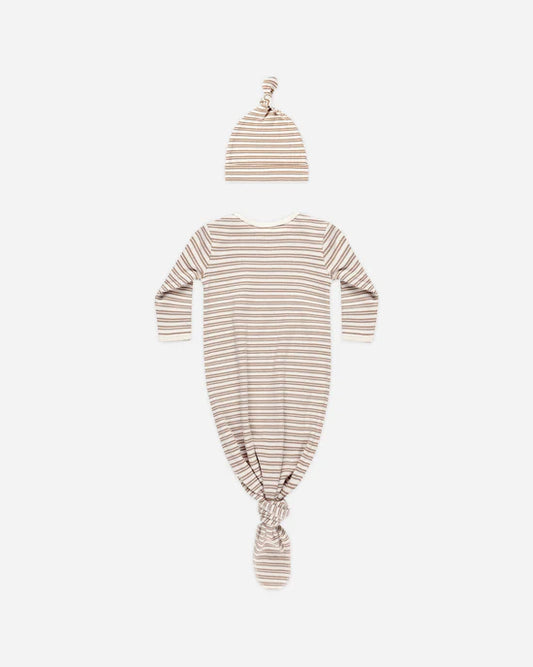 • Knotted Baby Gown + Hat Set || Golden Stripe