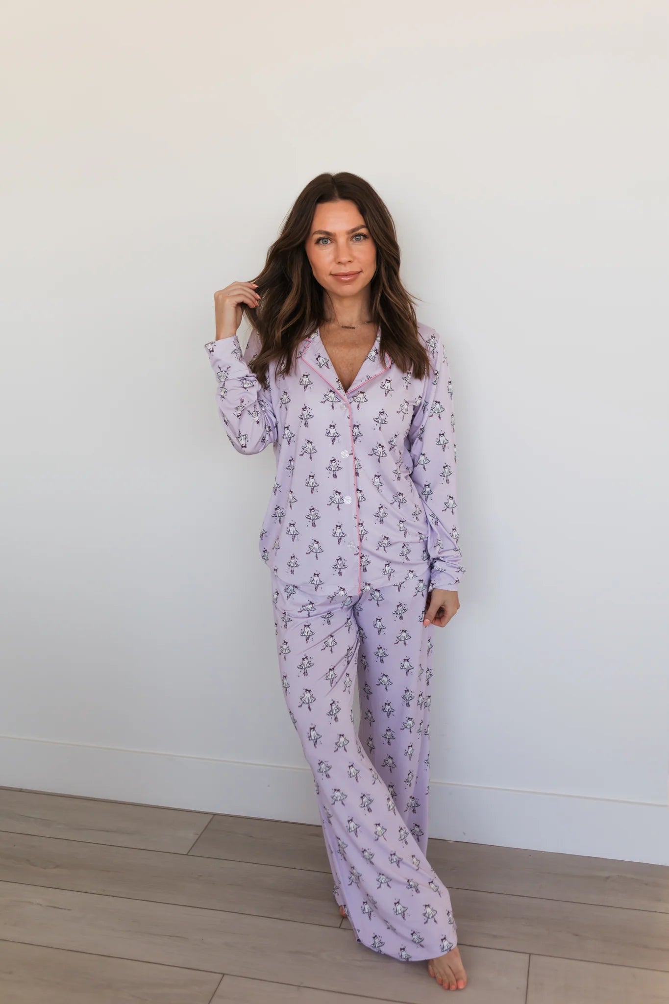 Meet the softest spooky-season ballerina your little one will ever wear. Our Ballerina Ghost print features twirling ghost dancers with pink bows, ballet shoes, and just the right sprinkle of Halloween sparkle. Set against a lavender background, this limited-edition design is available in zipper rompers, two-piece sets, and a women’s pajama set for a charming Mommy + Me match.