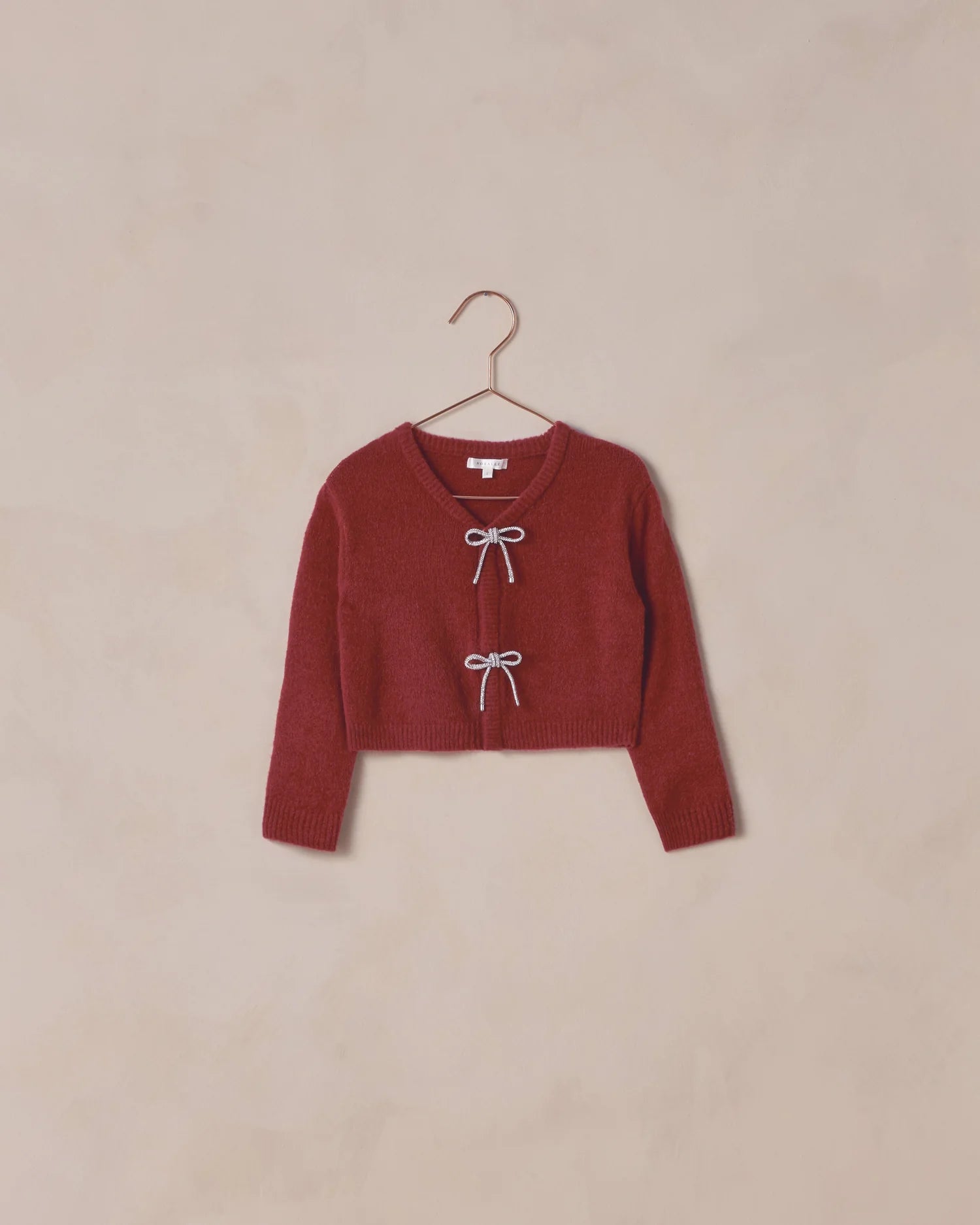 The Bow Cardigan is a sweet layering piece featuring a classic knit body with delicate bow details down the front. Designed for both comfort and charm, it pairs beautifully with holiday dresses or can be worn as a cozy statement piece on its own.