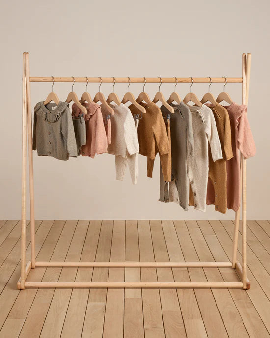 Cozy Heathered Knit Jumpsuit made of soft sweater knit. Featuring coconut buttons at the neck and along the inseam for easy changing.
