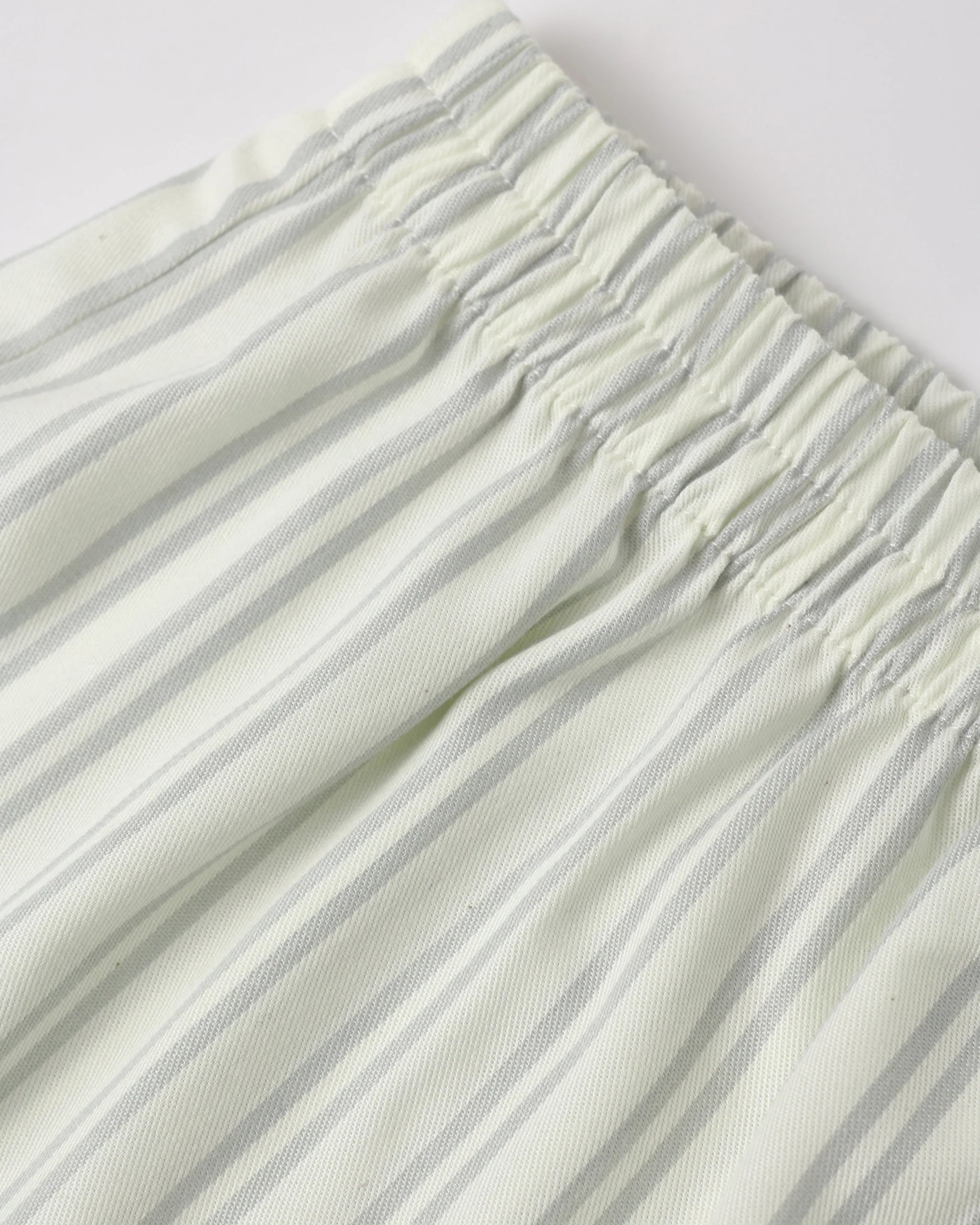 Featuring our 'seafoam railroad stripe' all-over pattern. Dream of a cottage by the sea in this beautiful stripe print.