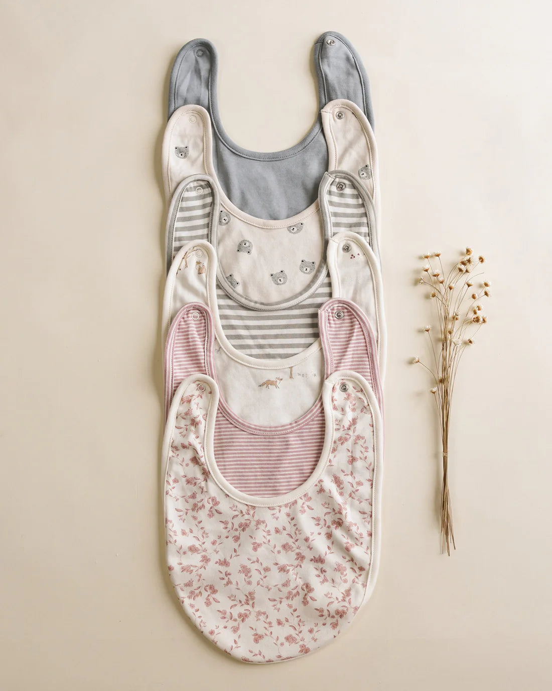 Bibs crafted from our soft brushed jersey, featuring a back neck snap closure for easy on and off.