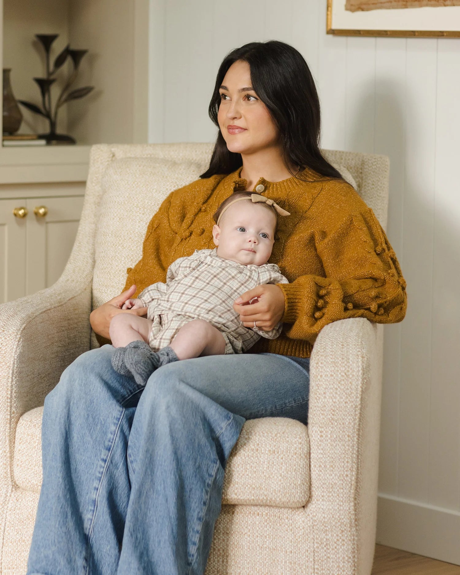 Adorable knit booties with ties at the ankle for a snug, secure fit.