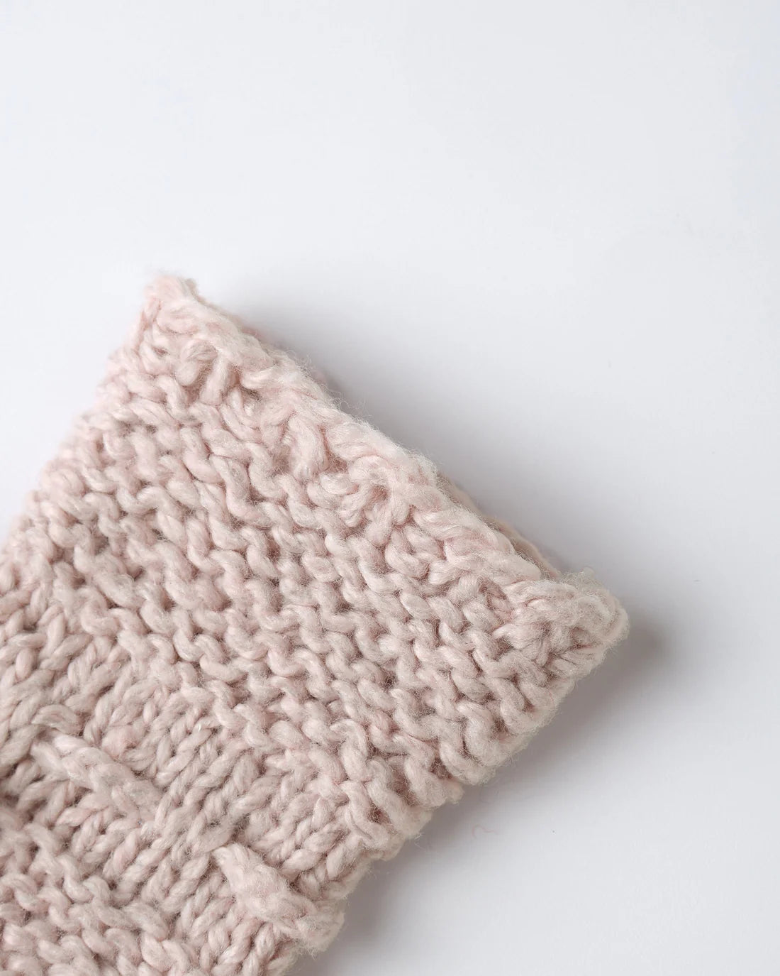 Adorable knit booties with ties at the ankle for a snug, secure fit.