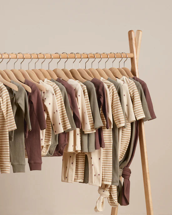 Knotted baby gown paired with our knotted baby hat in our stretchy rib knit with fold over hand mitts.