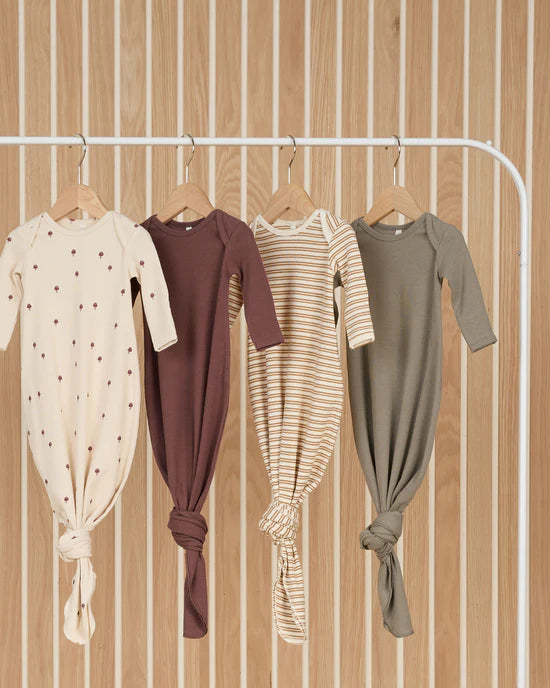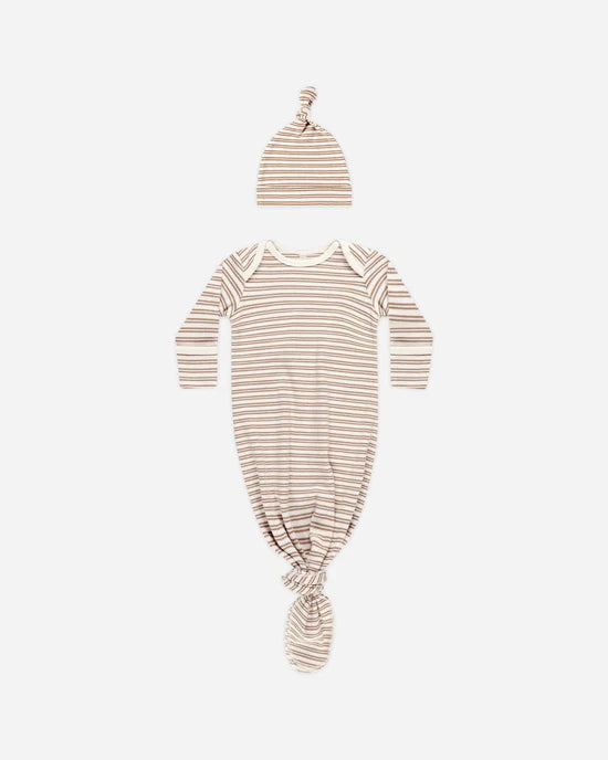 Knotted Baby Gown + Hat Set || Golden Stripe