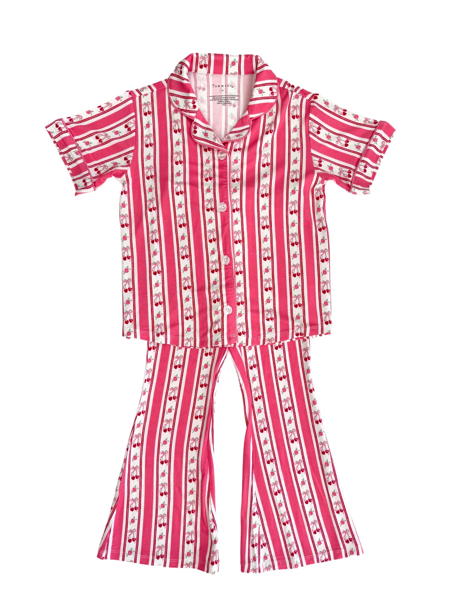 - Included is a long sleeve button up top and matching flare pants