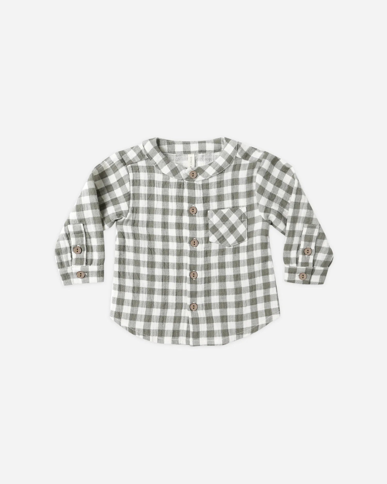 Our Long Sleeve Milo Shirt features a mandarin collar, chest pocket, and buttons along the front placket for a clean, modern look.