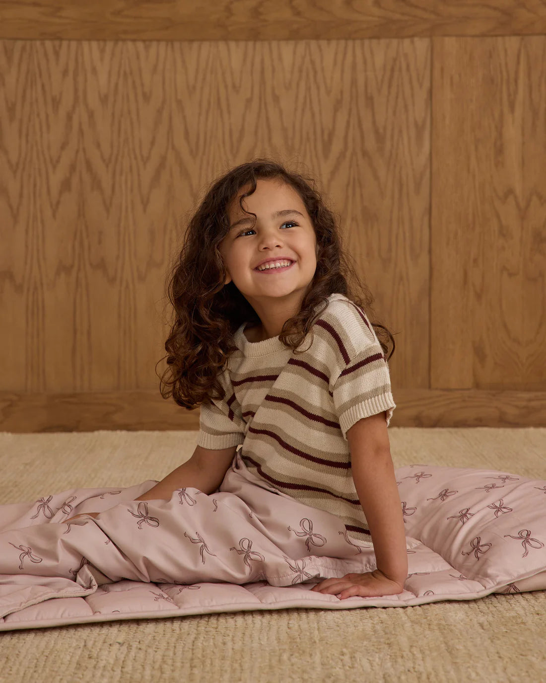 Expertly crafted from oh-so-soft materials, our Nap Mat features an attached micro-fleece blanket, built-in removable pillow, and plush batting for extra comfort—making naps on the go as easy as they come.