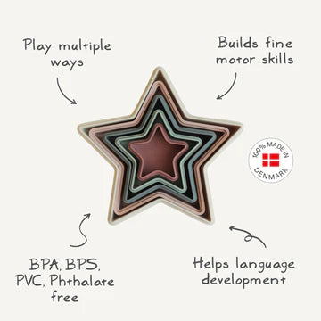 Shooting stars are lighting up the Danish town of Aarhus to make their way to your child's playroom. Little ones will love matching the muted colors while exploring their fine motor skills with this beautiful nesting star toy set.