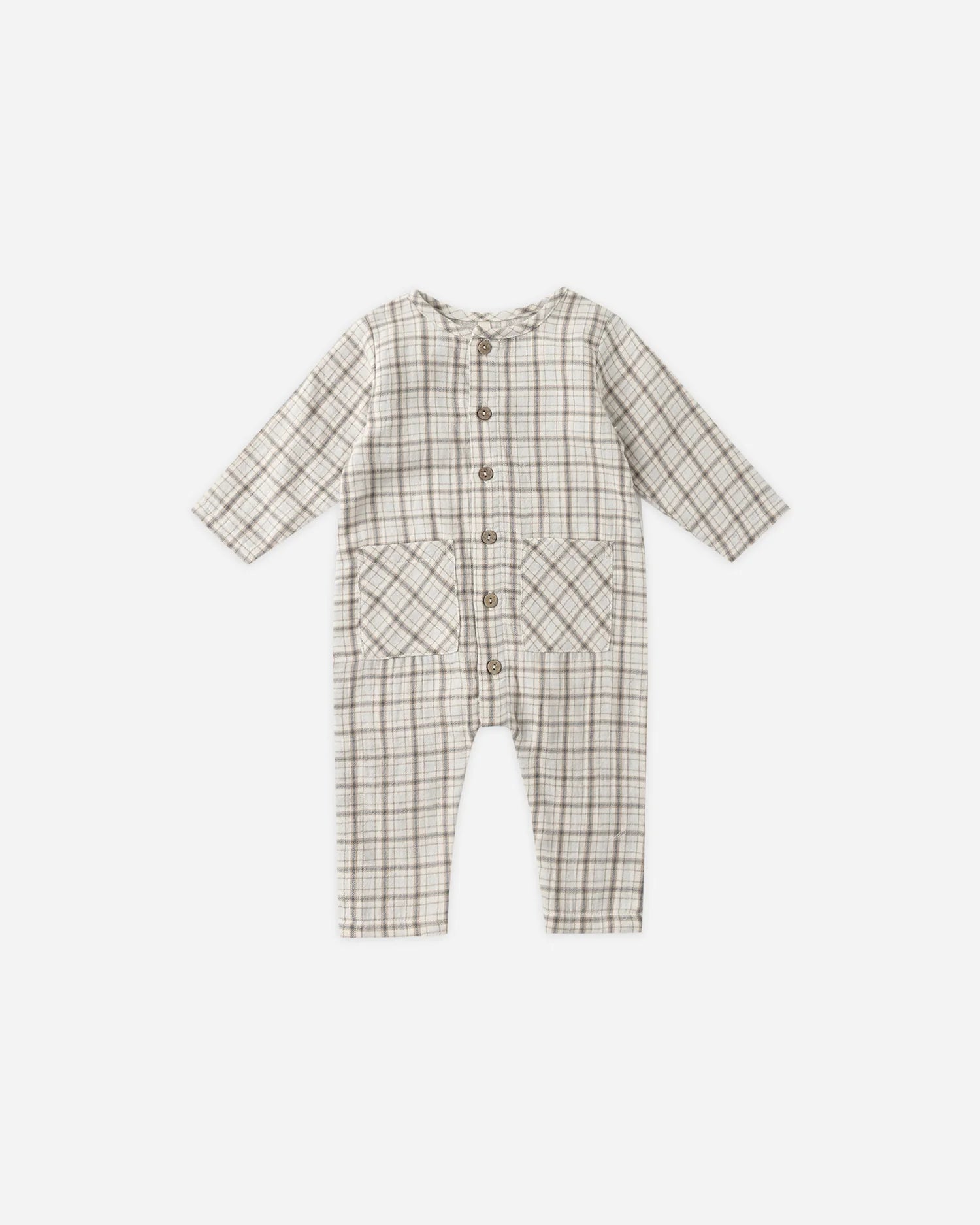 Made from soft organic cotton gauze, this darling jumpsuit features square patch pockets on the front and buttons down the center for easy changing - an everyday staple with timeless charm.