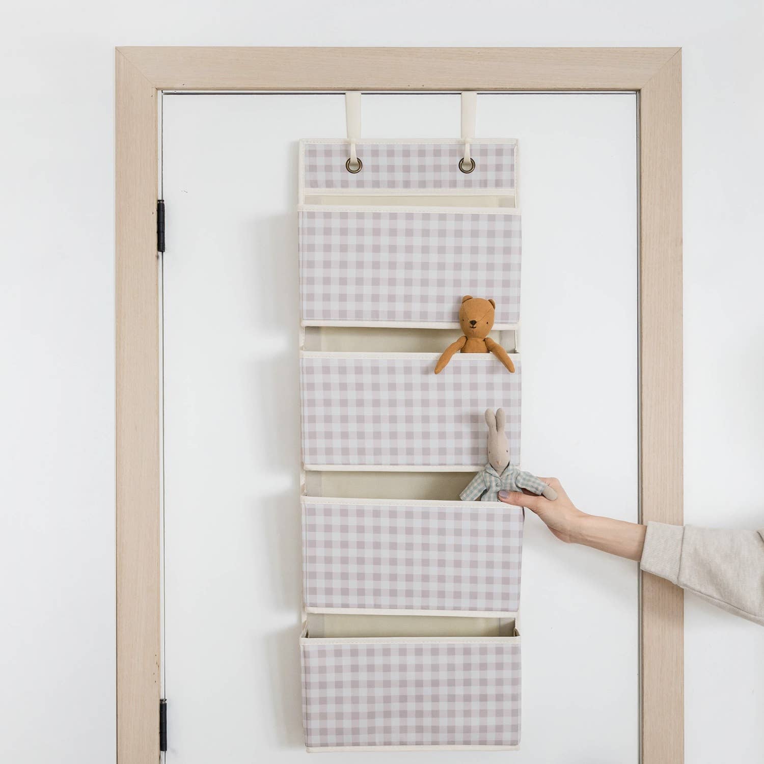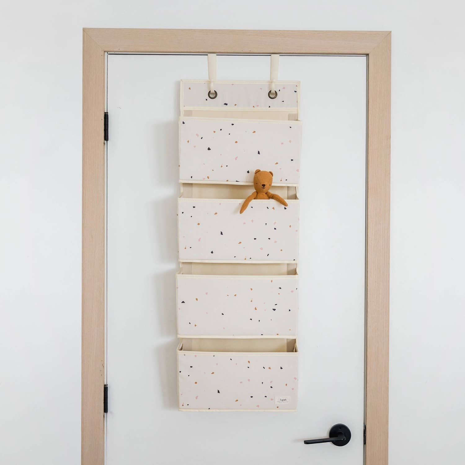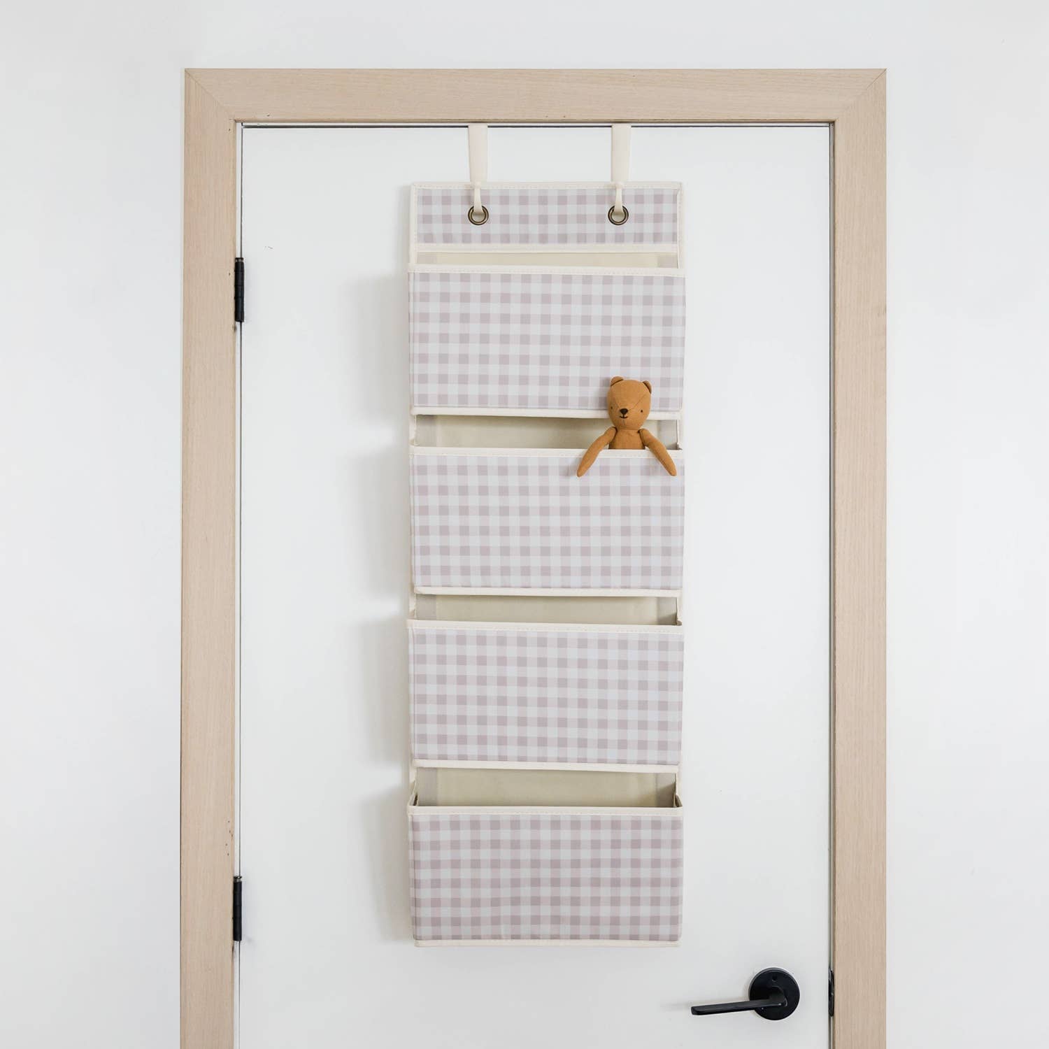 Our hanging over the door organizer is the perfect solution for clearing up all those small items that add up to one big mess. The hooks are included so its easy to hang. The organizer has 4 generous pockets. Ideal for diapers in the nursery, precious art projects or those tiny ‘gotta find it now’ toys, the 3 Sprouts hanging wall organizer helps you find a place for even the smallest of things.