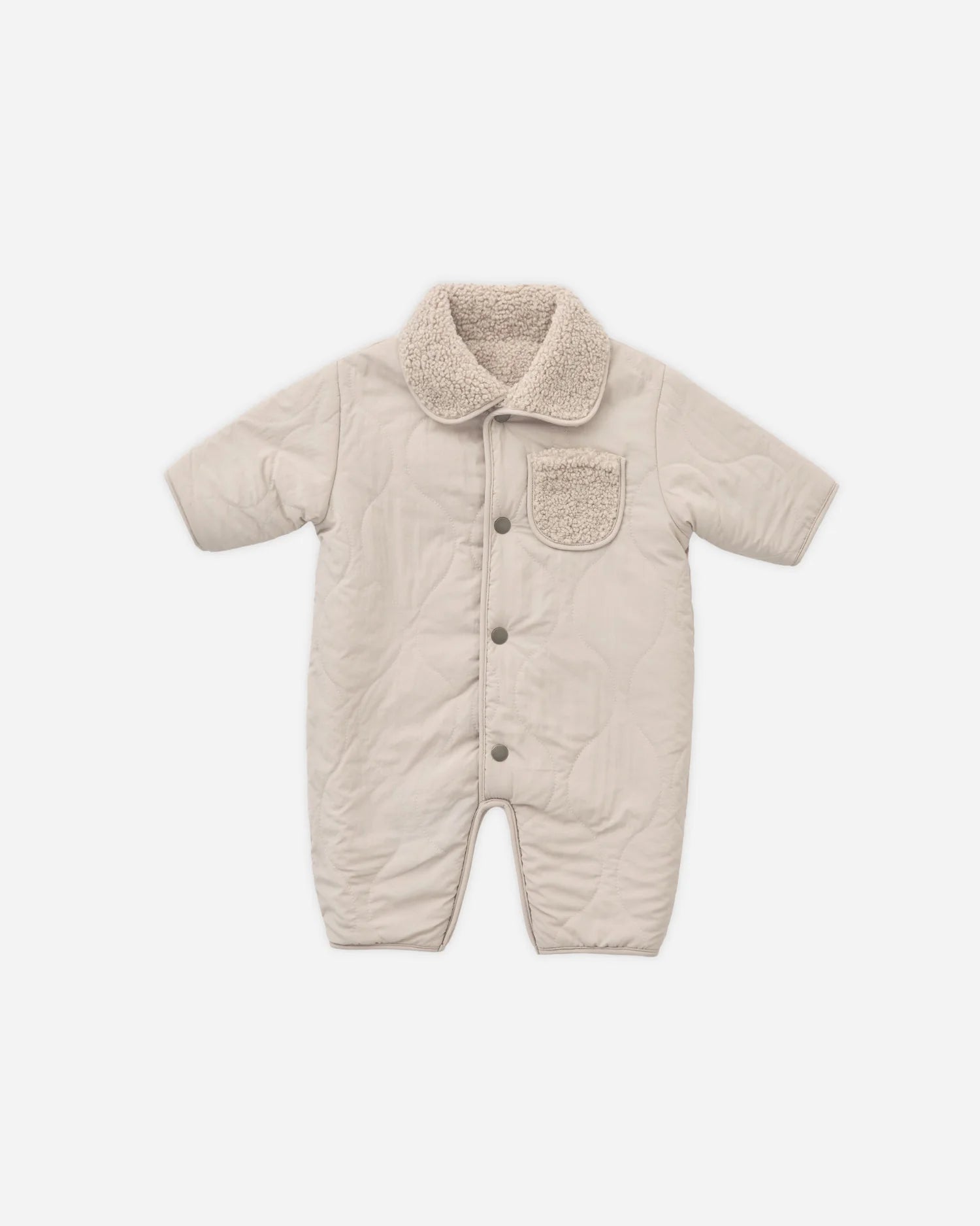 This reversible Shearling Jumpsuit includes front snap buttons for easy layering, contrast binding, and a small chest pocket—perfect for keeping your little one bundled in style.