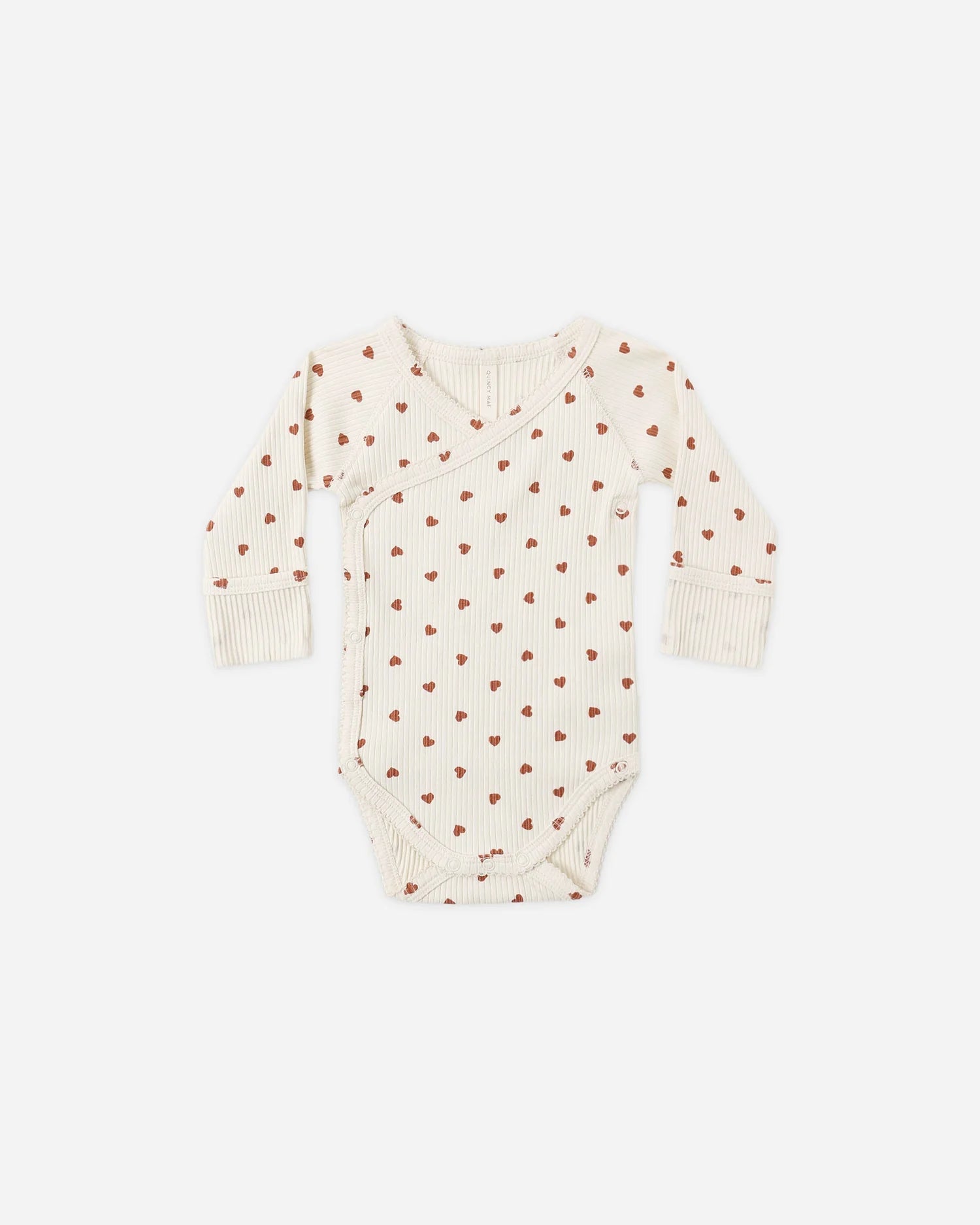 Side snap bodysuit made out of our soft and stretchy organic brushed fabric. Snaps at inside and along inseam for the coziest fit with fold-over hand mitts.