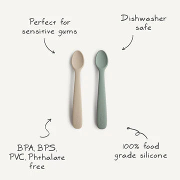 Crafted from food-grade silicone, Mushie feedings spoons are designed to give you peace of mind while feeding your baby. The soft, flexible spoon tip is gentle on sensitive gums and newly sprouted teeth, making every bite safe and comfortable. Lightweight and easy to hold, they help make mealtime a calm and enjoyable experience for both parents and little ones.