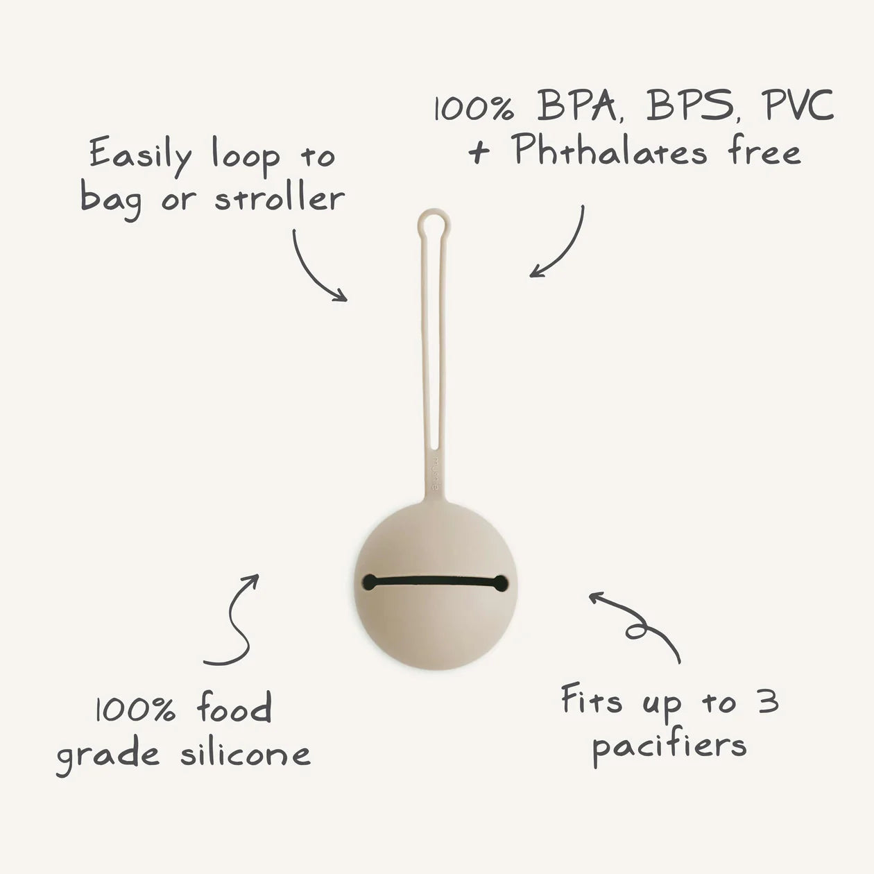 Comfort is always within reach with a mushie pacifier case, equipped with a sturdy strap and room to fit up to three pacifiers. Designed in Sweden, the pacifier case is made from food-grade silicone in timeless colors and can be easily looped onto a diaper bag or stroller.
