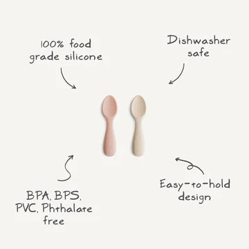 Mushie toddler starter spoons are the perfect companion for your little one's journey into independent feeding. Made from non-toxic, food-grade silicone, these spoons are gentle on sensitive gums and emerging teeth. The easy-to-grip handle designed for little hands promotes coordination and confidence as children learn to feed themselves.