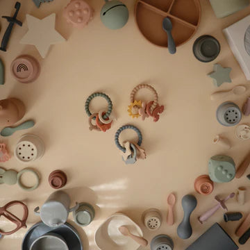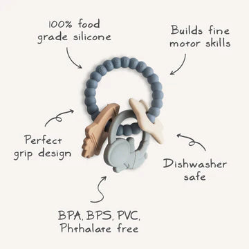Introduce baby to our space teething ring with features that offer comfort, support and soothing relief. Made from 100% food grade silicone, the soft yet durable material satisfies baby’s natural urge to chew with textured moon and star shapes around the ring. Its astronaut, star and rocket ship charms create out-of-this-world playtime opportunities for littles as they grow in their sensory development.