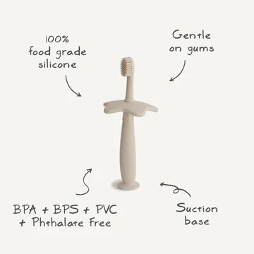 Introduce your little one to brushing independently while building good habits with our playfully-designed toothbrush. Made from 100% food grade silicone, this toothbrush is designed with super soft bristles that gently clean and stimulate your little one's gums and teeth.