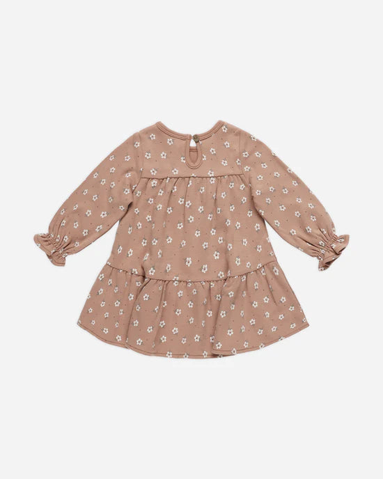 Velvety soft baby dress with tiers and long sleeves, has a coconut button back closure for easy changing as well also. All baby sizes includes our gathered bloomers!