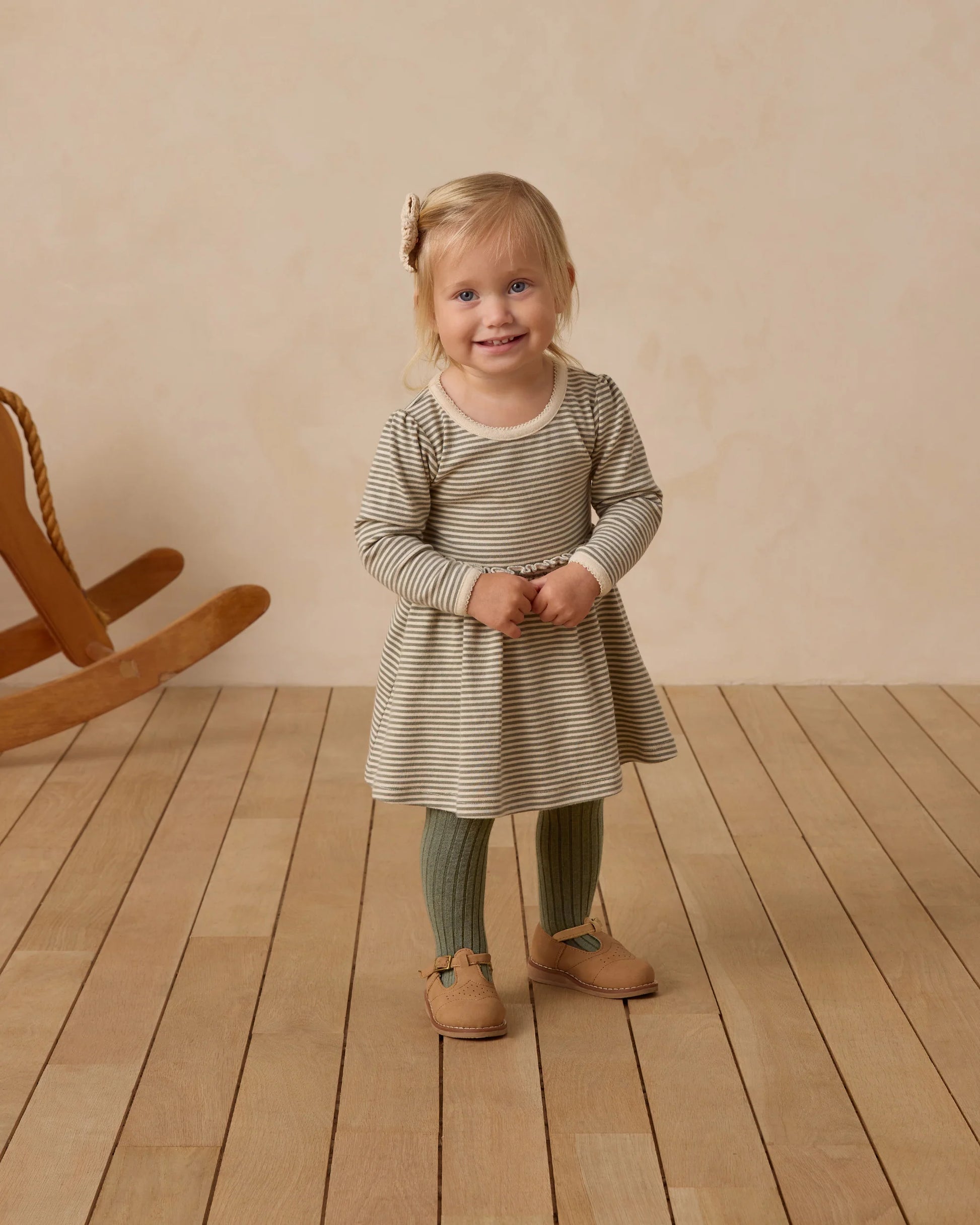 Rib knit footed tights made from soft, stretchy fabric to keep little ones warm. Layer under one of our dresses for an extra sweet look.
