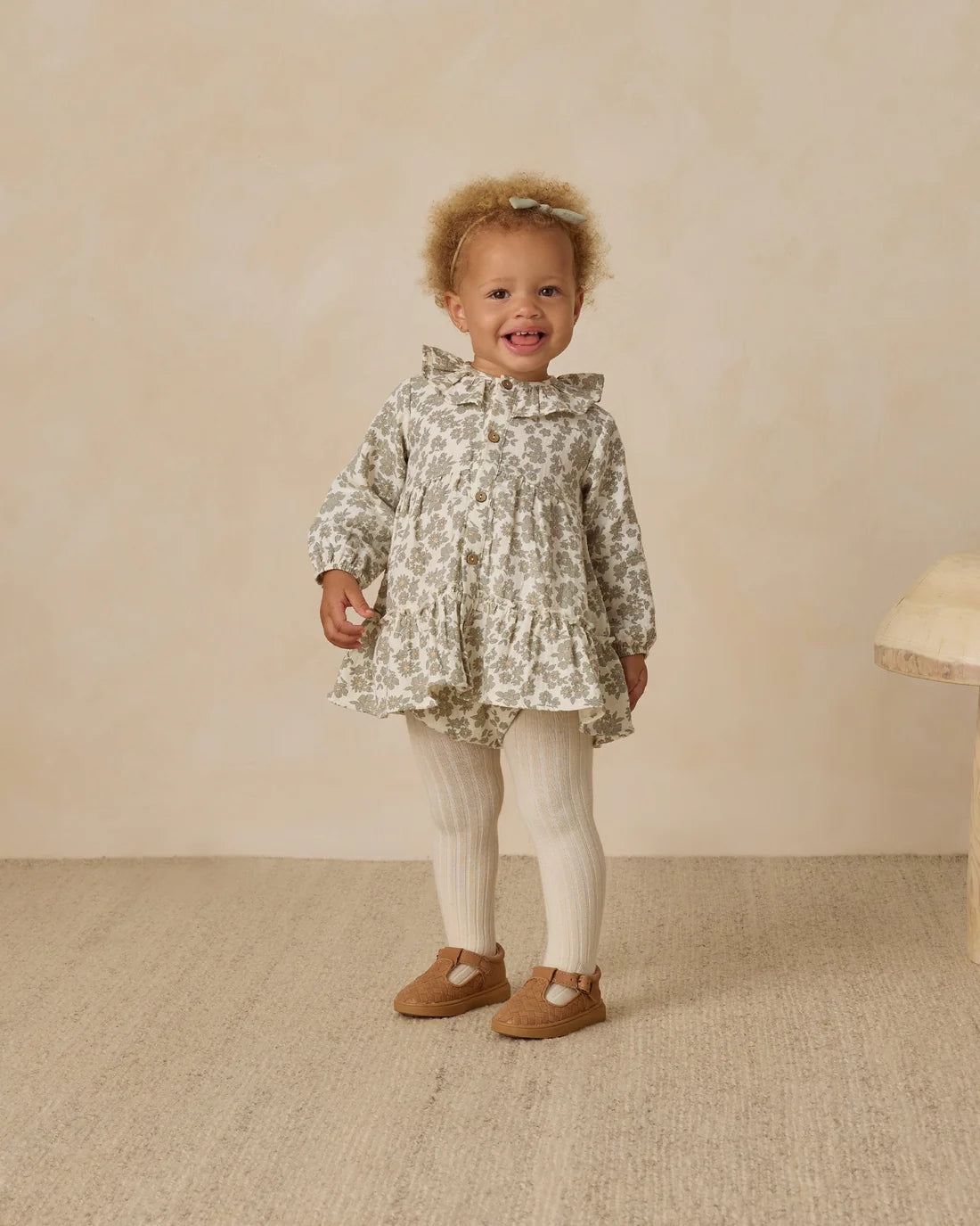 Rib knit footed tights made from soft, stretchy fabric to keep little ones warm. Layer under one of our dresses for an extra sweet look.
