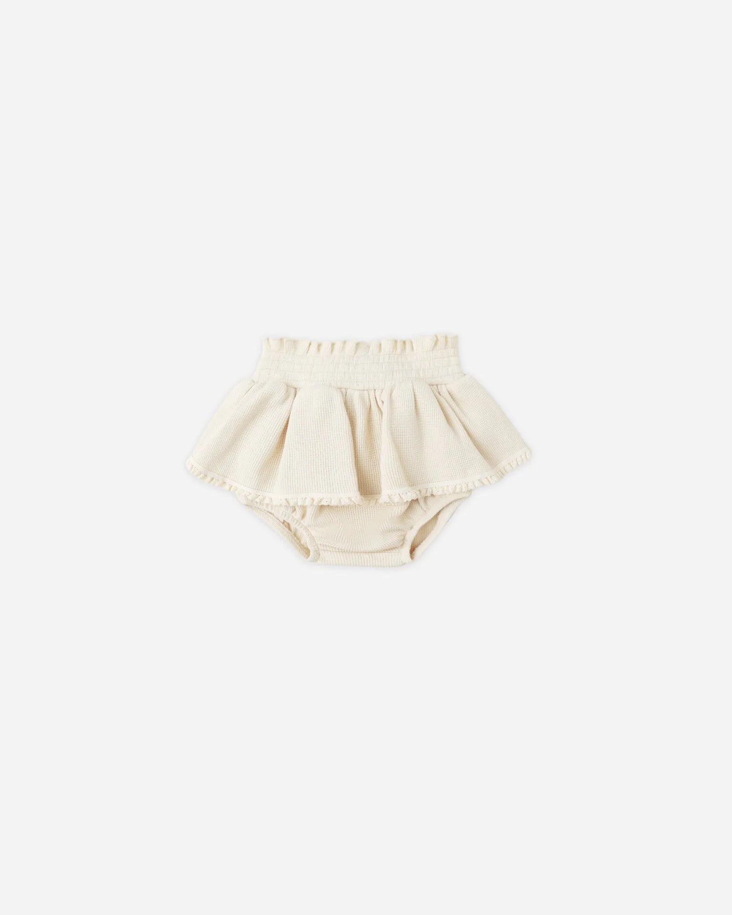 Waffle Long Sleeve Bodysuit +Skirted Bloomer|| Natural