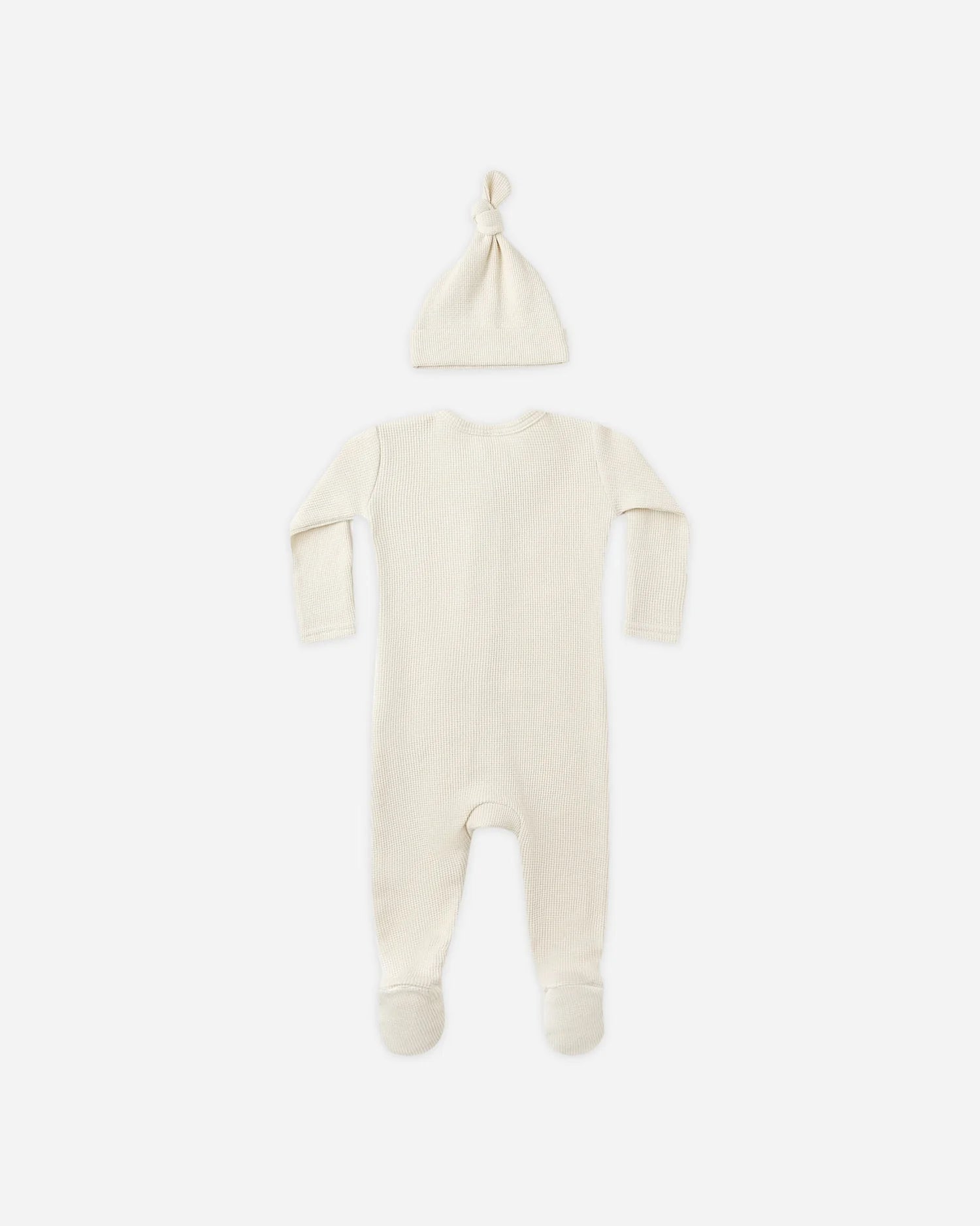 Made from our soft waffle fabric, this long sleeve sleeper keeps your little one cozy all season long. Paired with a knotted hat, it’s the perfect set for comfort and warmth. Sizes NB - 3-6M feature fold over hand mitts. Sizes 6-12M - 12-18M feature rubber dots on the soles.
